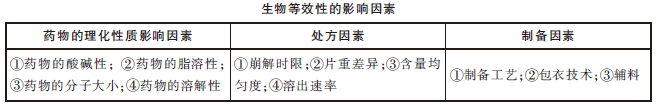 生物等效性的影響因素,見下表。