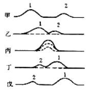 ②找兩個同學拉著一條長繩,讓他們同時分別抖動一下繩的端點,則會從兩端各產(chǎn)生一個波包向?qū)Ψ絺鞑ィ攦蓚€波包在中間相遇時,形狀發(fā)生變化,相遇后又各自傳播.(由于這種現(xiàn)象一瞬間完成,學生看不清楚,教師可用計算機多媒體演示)