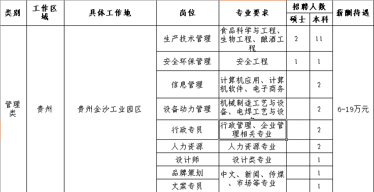 公司現(xiàn)有員工2000余人,固定資產(chǎn)達(dá)35億元,年產(chǎn)基酒達(dá)1.9萬(wàn)噸,老酒儲(chǔ)備達(dá)4萬(wàn)噸,是貴州第二大醬香型白酒生產(chǎn)企業(yè)。曾先后榮獲歷屆貴州八大名酒、中國(guó)馳名商標(biāo)、布魯塞爾烈性酒大金獎(jiǎng)等各種殊榮,獲得純糧固態(tài)發(fā)酵白酒標(biāo)志認(rèn)定和國(guó)家地理標(biāo)志保護(hù)產(chǎn)品認(rèn)定。2019年品牌價(jià)值達(dá)至268.06億元,銷售市場(chǎng)從貴州擴(kuò)展到北京、山東、河南、廣東、廣西、江蘇、安徽等全國(guó)27個(gè)省市。因公司發(fā)展需要,現(xiàn)面各高校及社會(huì)招聘一批優(yōu)秀人才。現(xiàn)將有關(guān)事項(xiàng)公告如下: