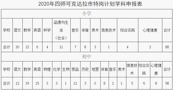 2020年第四師可克達拉市擬招聘義務段特崗教師186名(小學88名,中學98名)。崗位需求見附件1