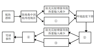 3.根據(jù)材料1,在答題卡相應(yīng)的題號位置填補“雪球事件”形成的因果鏈?zhǔn)疽鈭D的缺項,其中①③均不超過15字,②④均不超過10字。